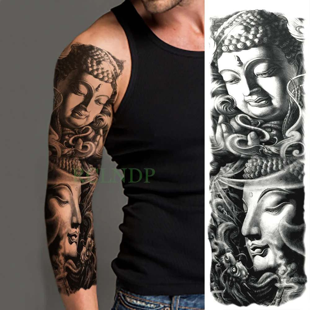 Waterproof Temporary Tattoo Sticker Buddha Chinese Style Full Arm Fake Tatto Big Flash Tatoo Sleeve Large Size For Men Women Temporary Tattoos Aliexpress